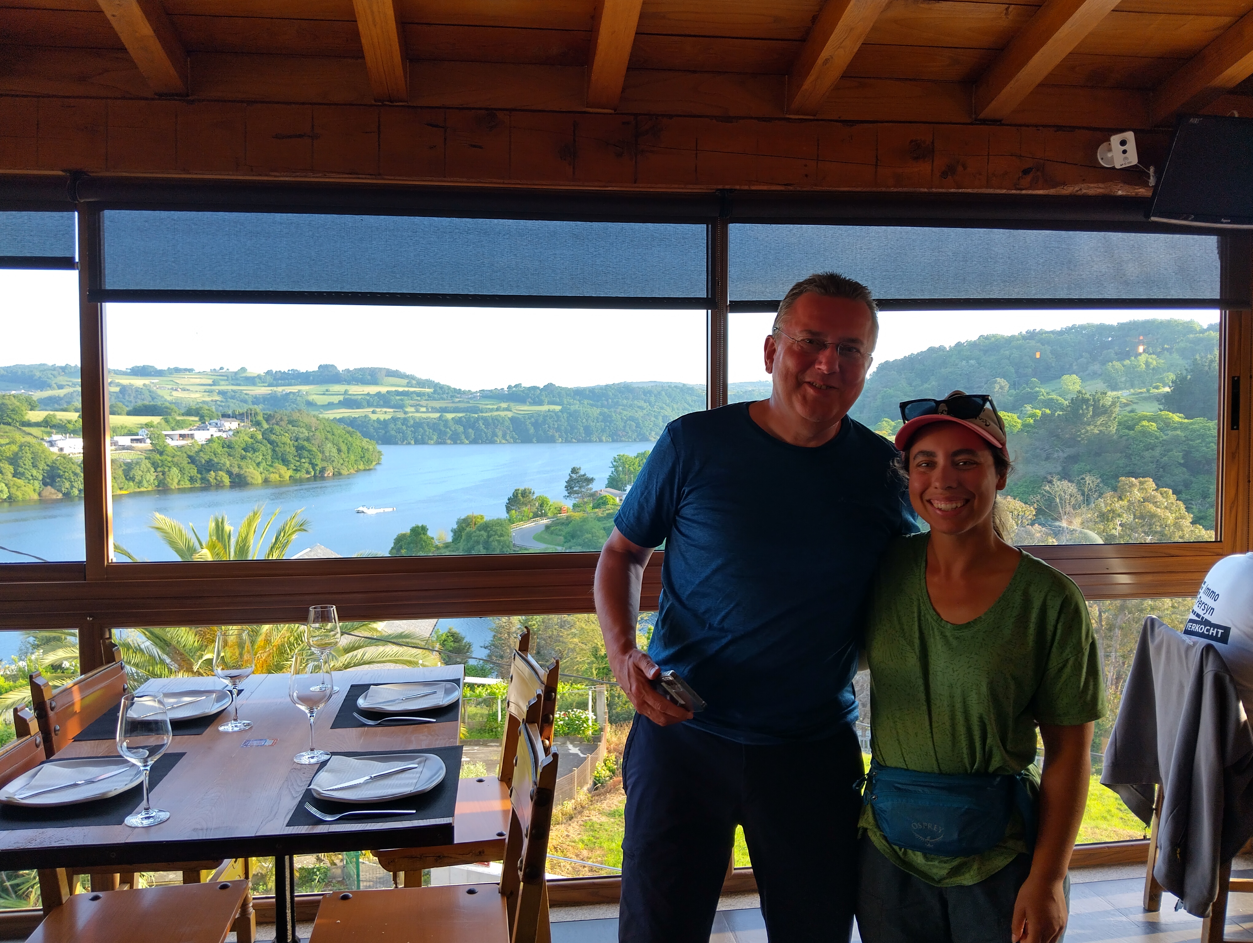 My friend Uwe from Germany found me and invited me to dinner at a fancy place he knew about which turned out to have service so terrible that at one point they told us we shouldn’t even be in the restaurant and later they were certain that we had paid in advance. At least the view of the river and the food were very good—I had the scallops. Conversation with Uwe was interesting. His English wasn’t completely fluent and yet he would often disagree with Google translate. I learned that he is a pianist and composes his own music and that he has done the Camino numerous times. I told him about the piano in the donativo in Pamplona and he was excited to stay there next time.