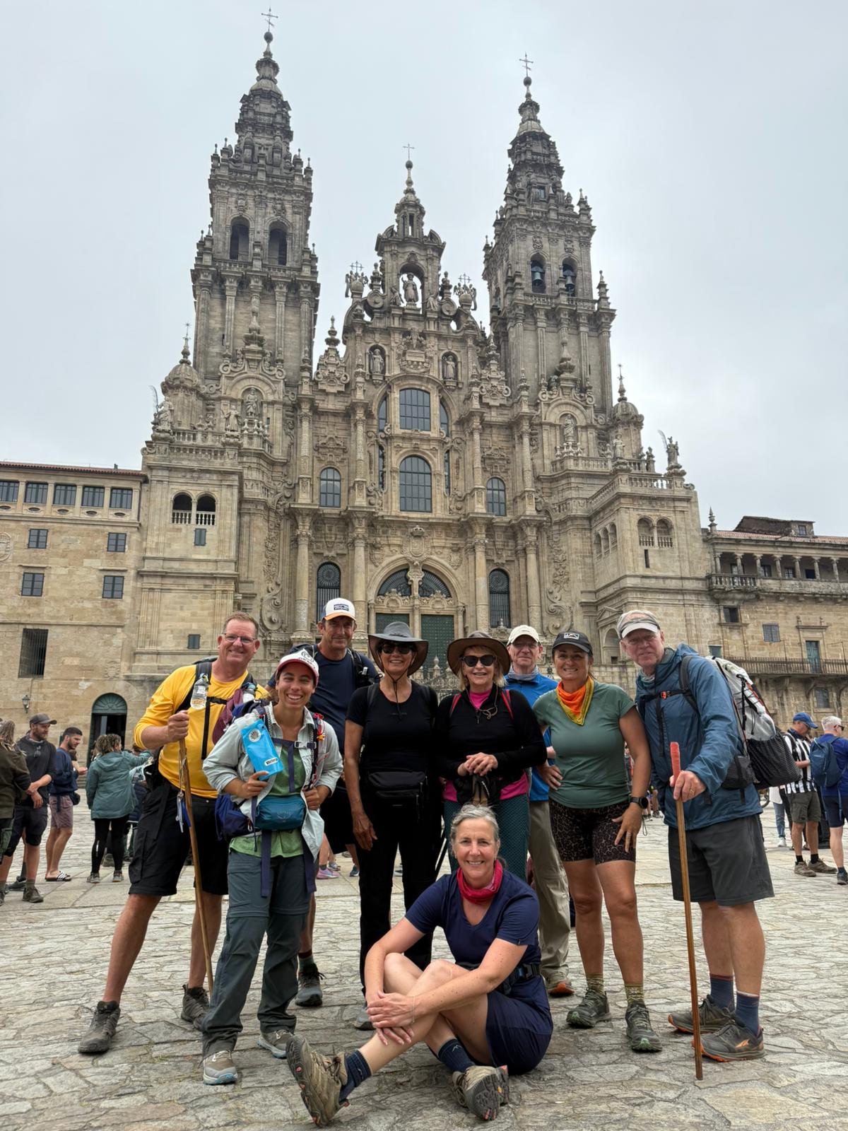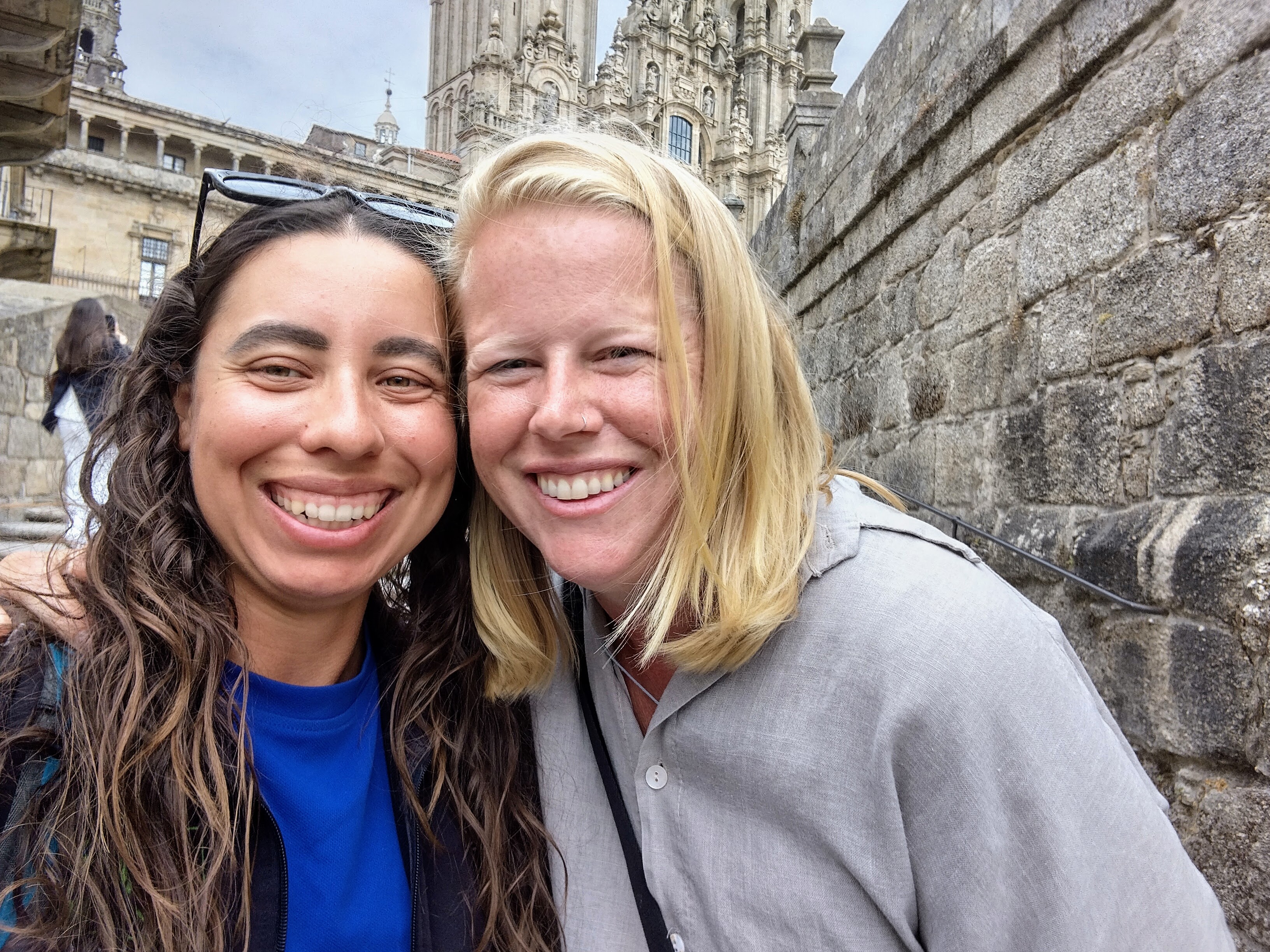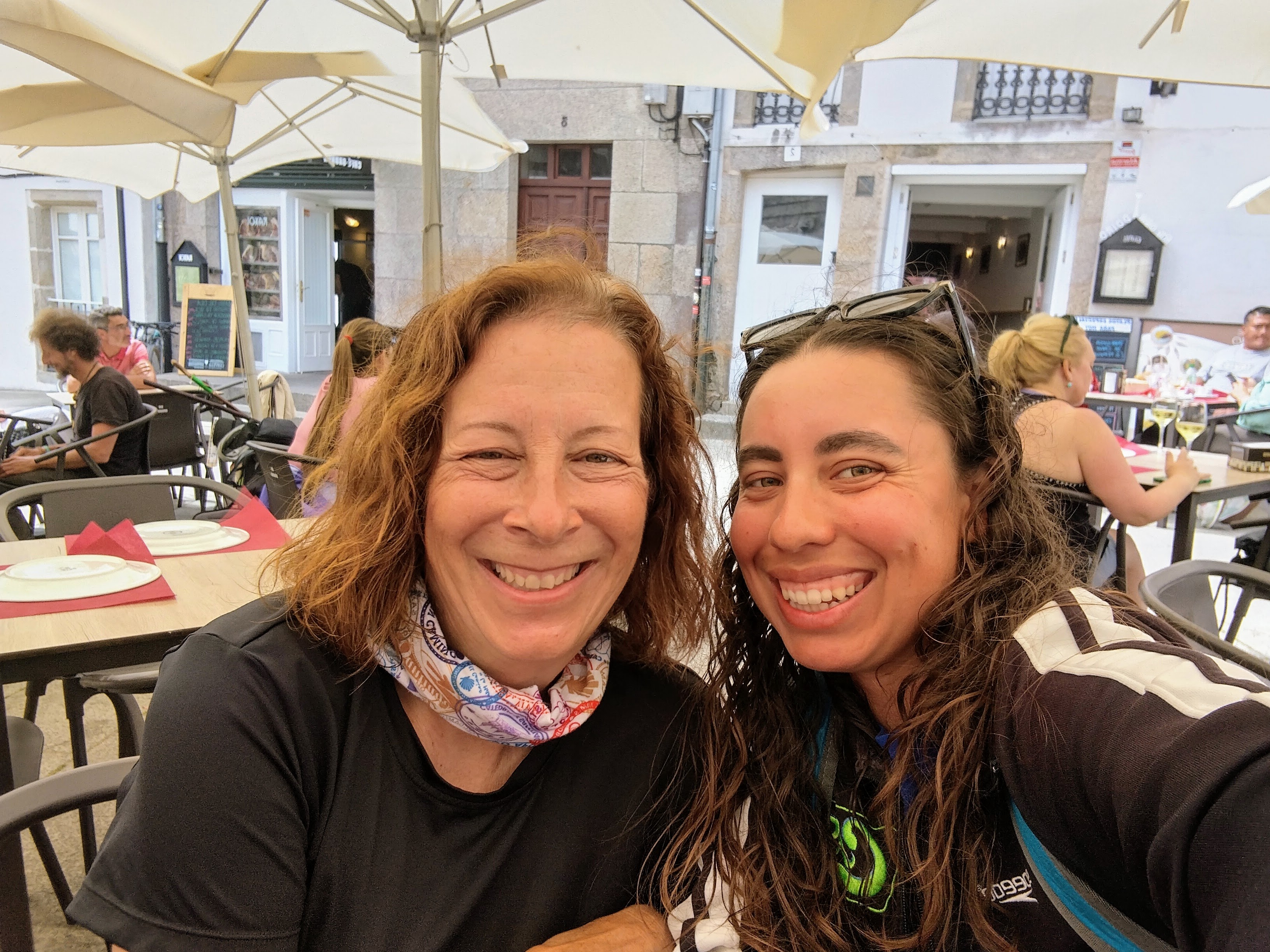We met up with Lori who’d gotten a huge group together outside a restaurant across from the cathedral. Friends, acquaintances, and strangers who I’d somehow never met in the last five weeks came by to say hello and celebrate. By chance (like most of the Camino) Larry and Desi were there too and I was so happy to see them. The frenzied energy that had overwhelmed me when I first arrived was transmuted into pure joy and elation. To be surrounded by friends with whom you’ve completed a long journey means so much more than seeing a cathedral or receiving a certificate.